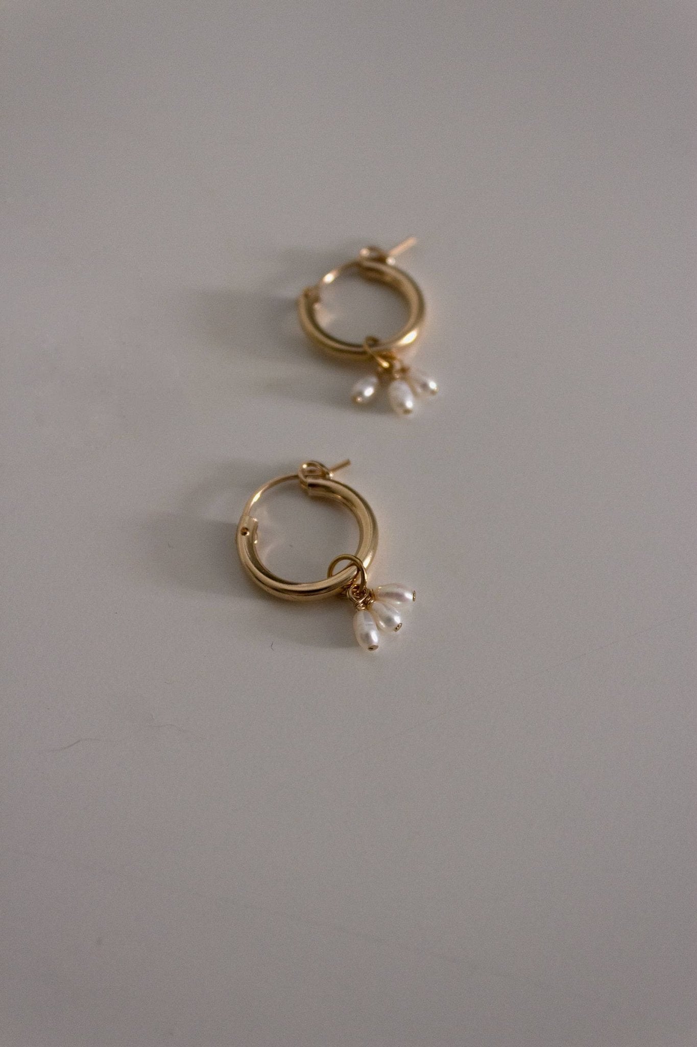Modern, minimal and fresh! These earrings feature a mini hoop that hugs the earlobe and a genuine tiny 2-3mm freshwater pearl cluster dangle. They are perfect for everyday wear! Lightweight and comfortable to wear. Wear them two ways - slide the dangle off to wear just the simple hoop earring.