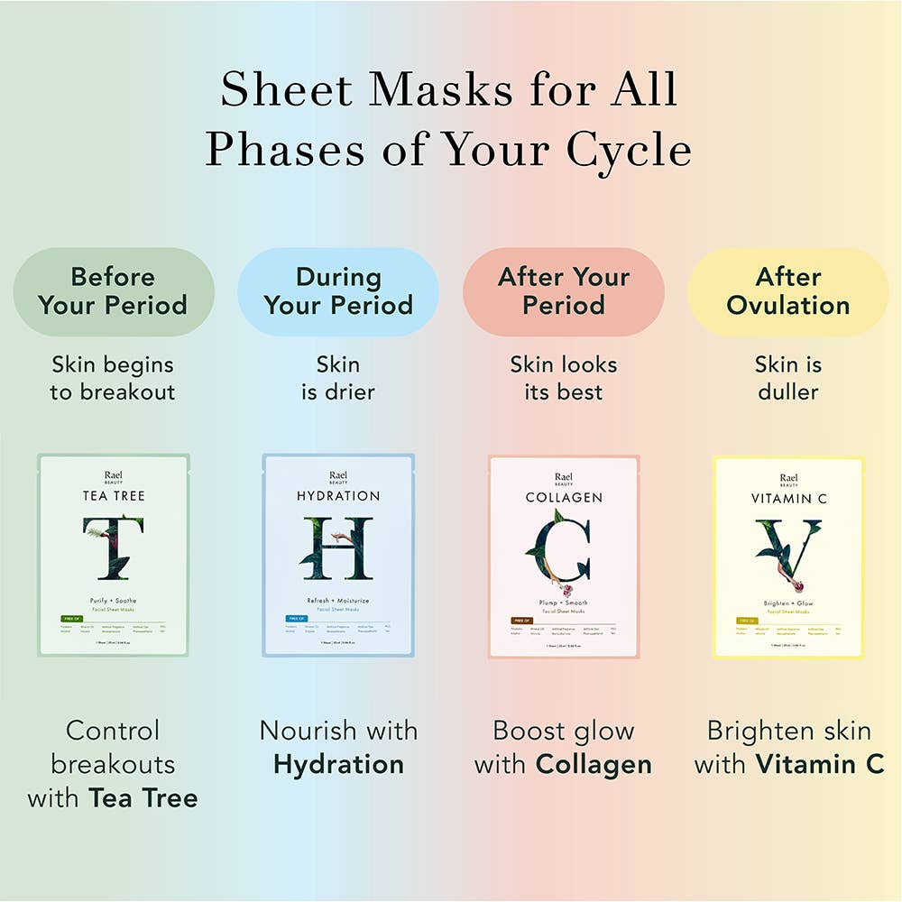 - Perfect for after your period, during your follicular phase when skin is at it's best: Look forward to a decrease in your skin’s sebum (aka oil) production and an increase in hyaluronic acid and collagen production, which make your skin look and feel plump and hydrated. Consider this the *glowy* skin phase of your cycle. The goal during this time is to keep your skin clear and prolong the glow by using the Collagen Sheet Mask.