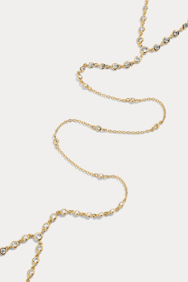Turquoise Double Solitaire Bezel Lariat Necklace 14K