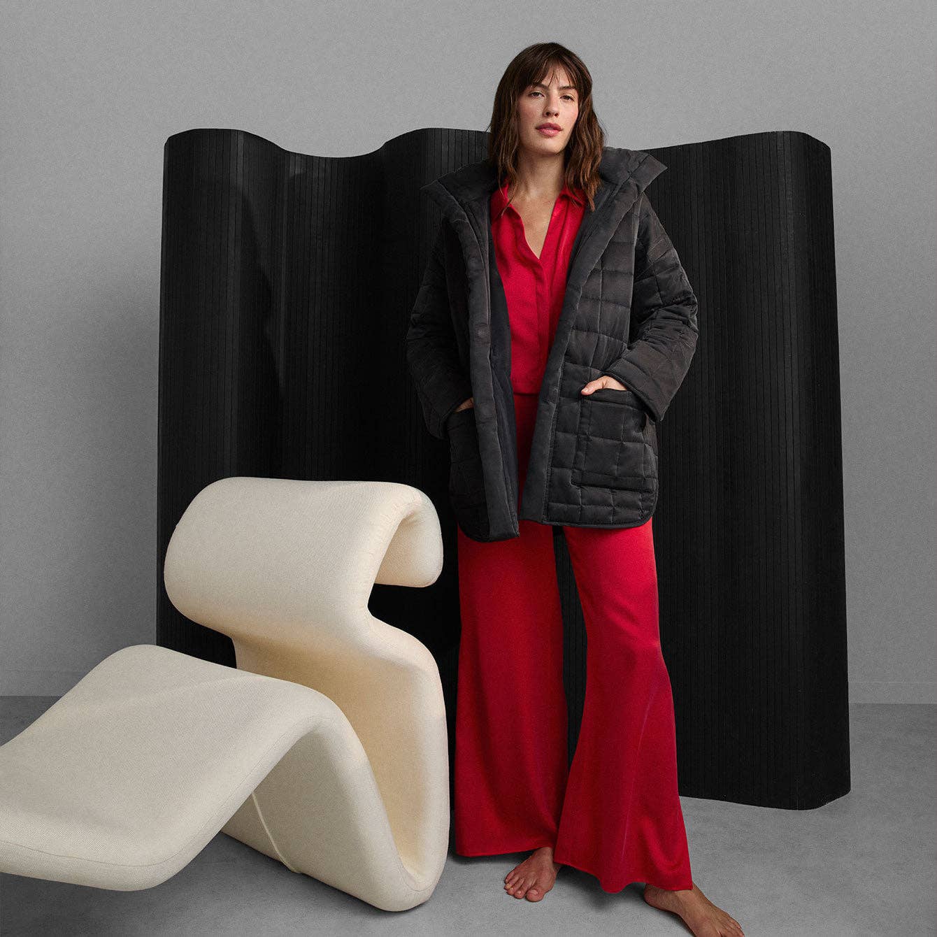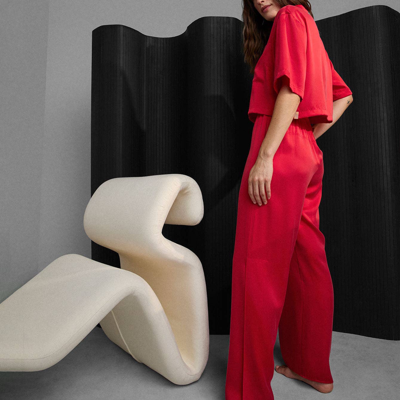 A high-rise version of our best selling Washable Silk Button Down Pant Set, this set has an ultra-flattering flat front waist pant with side slit (for hot sleepers who want a little leg ventilation), but the top comes in a cropped length that hits perfectly at the waistband. Bonus? Chic elongated arm length that hits at the elbows.