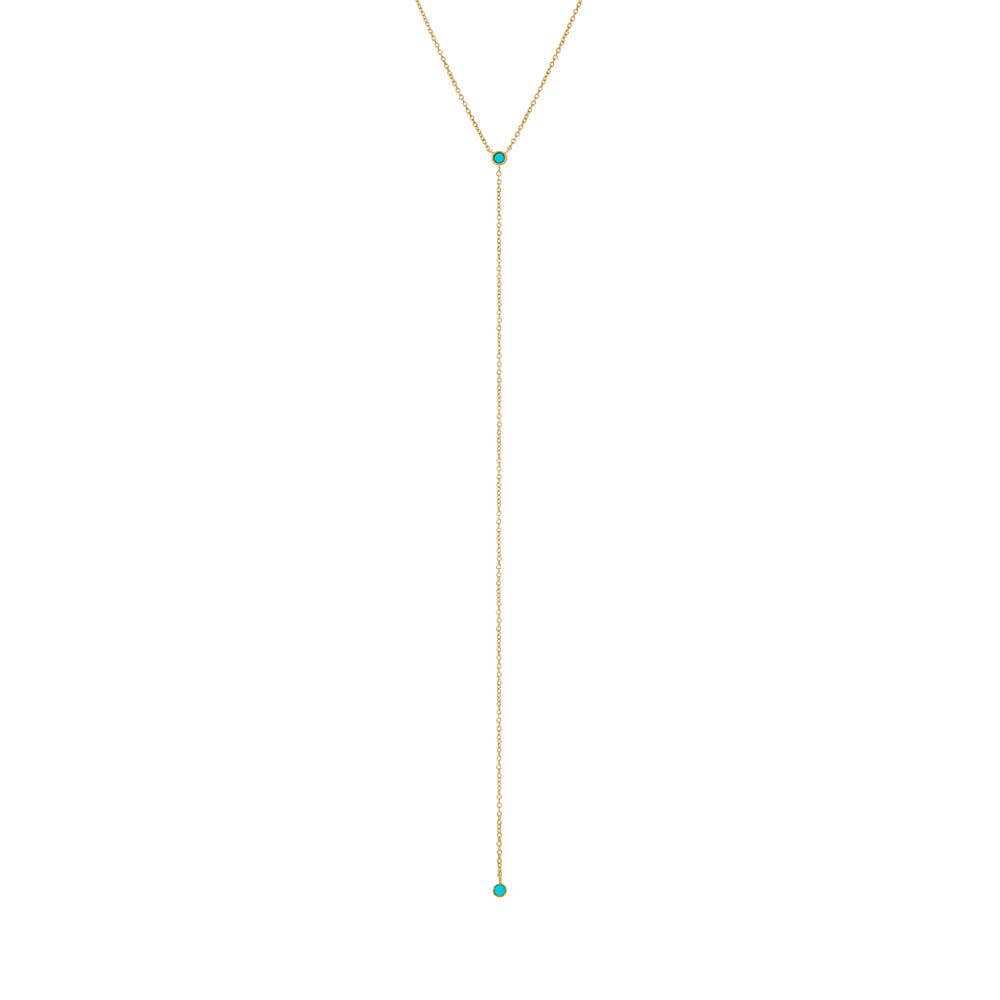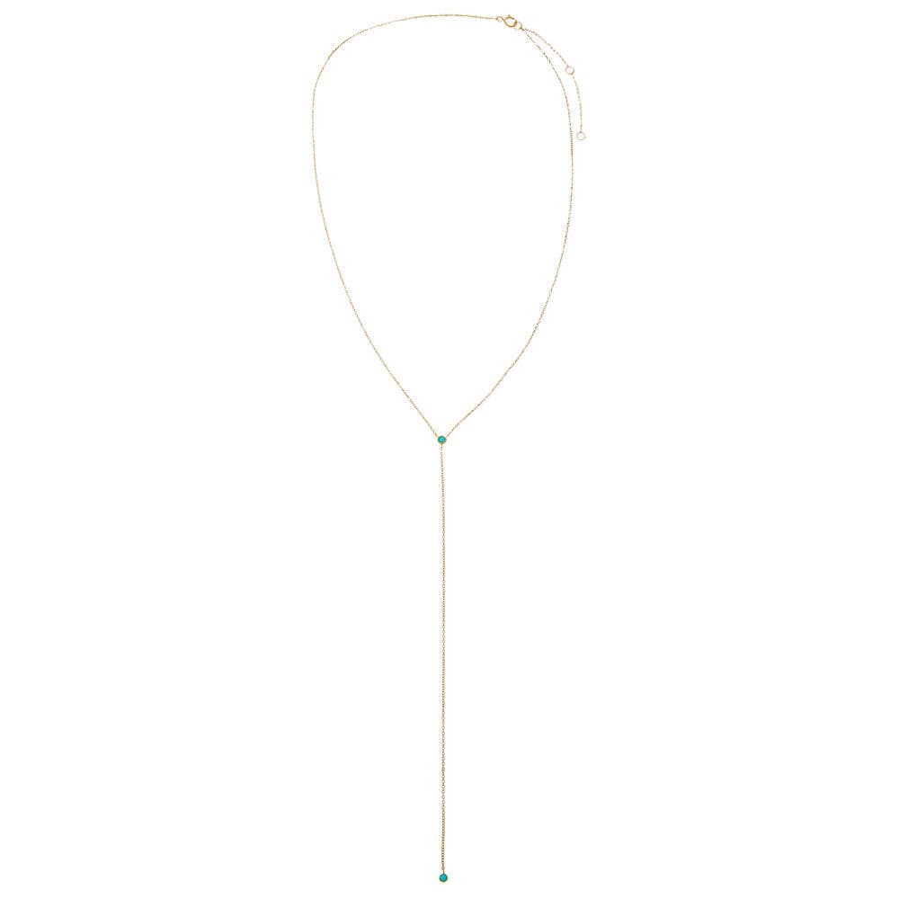 Make a sophisticated statement with the Adina Eden Turquoise Double Solitaire Bezel Lariat Necklace, expertly crafted in 14K gold.
