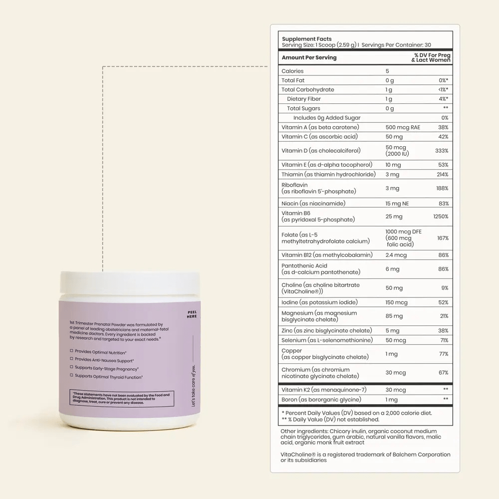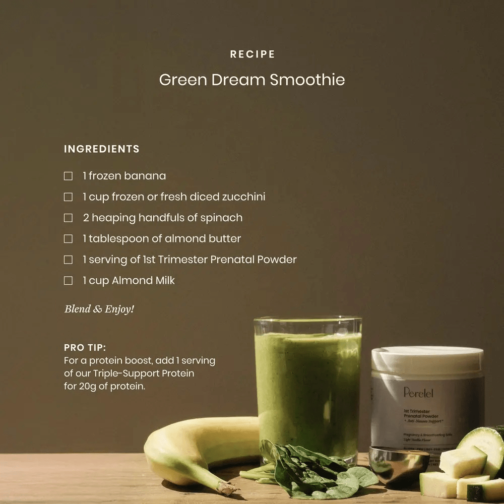 Made for those 1st trimester days when swallowing pills seems impossible. With a subtle hint of vanilla, our prenatal smoothie mix was designed to blend perfectly into a smoothie or milk of choice, cover your nutritional baseline needs and support baby's early development. Please note: This blend is not designed to fully replace a prenatal vitamin as it does not contain ironâbut can be used as-need for those especially difficult days.