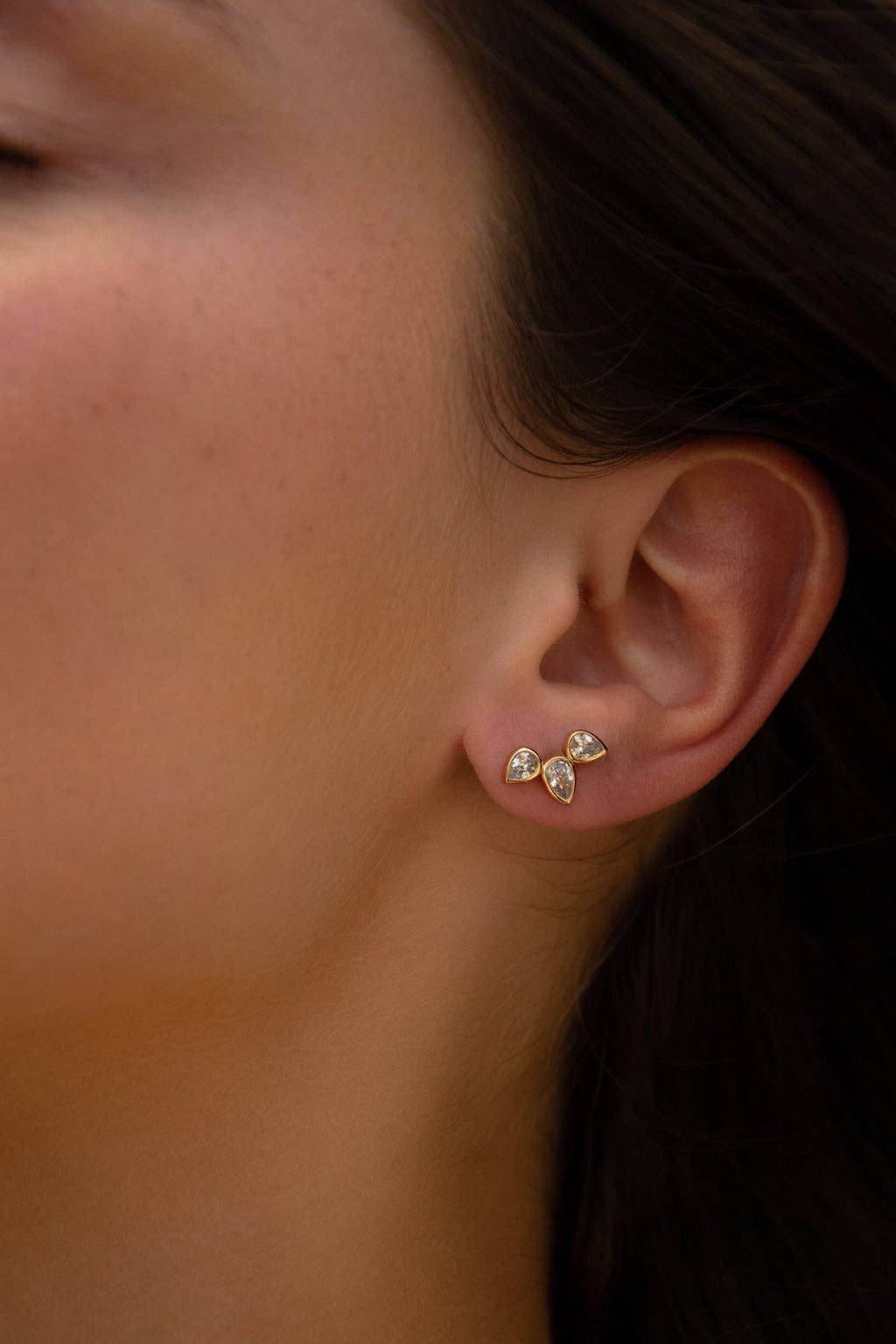 Stunning pear-shaped stones shine behind the ears, held in place by studs made up of another trio of pears.