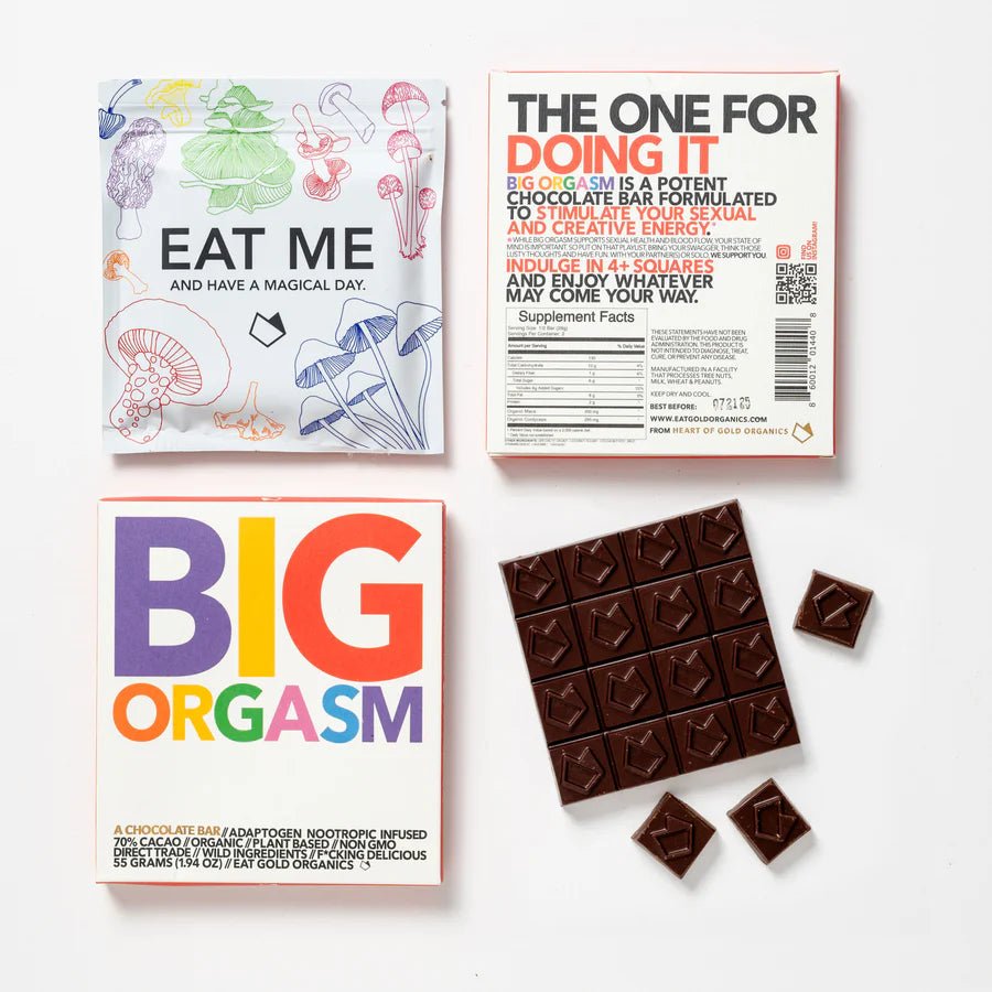 You deserve pleasure and mind-altering inspiration. The libido-supporting, organic ingredients in the chocolate — maca, cayenne, wild strawberries, and mushrooms — can help you achieve more more more.