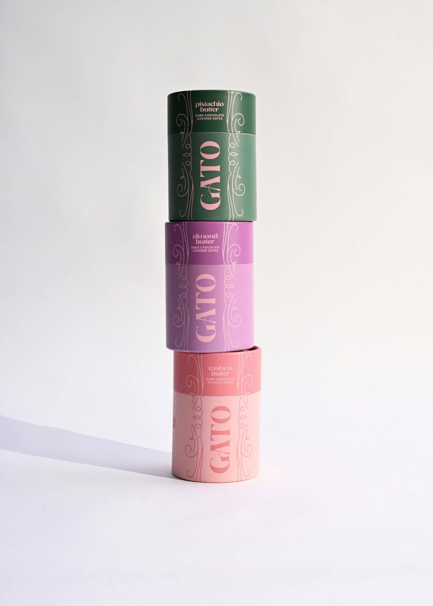 Soft Medjool dates, hand-filled with creamy nut butters and dipped in dark chocolate.