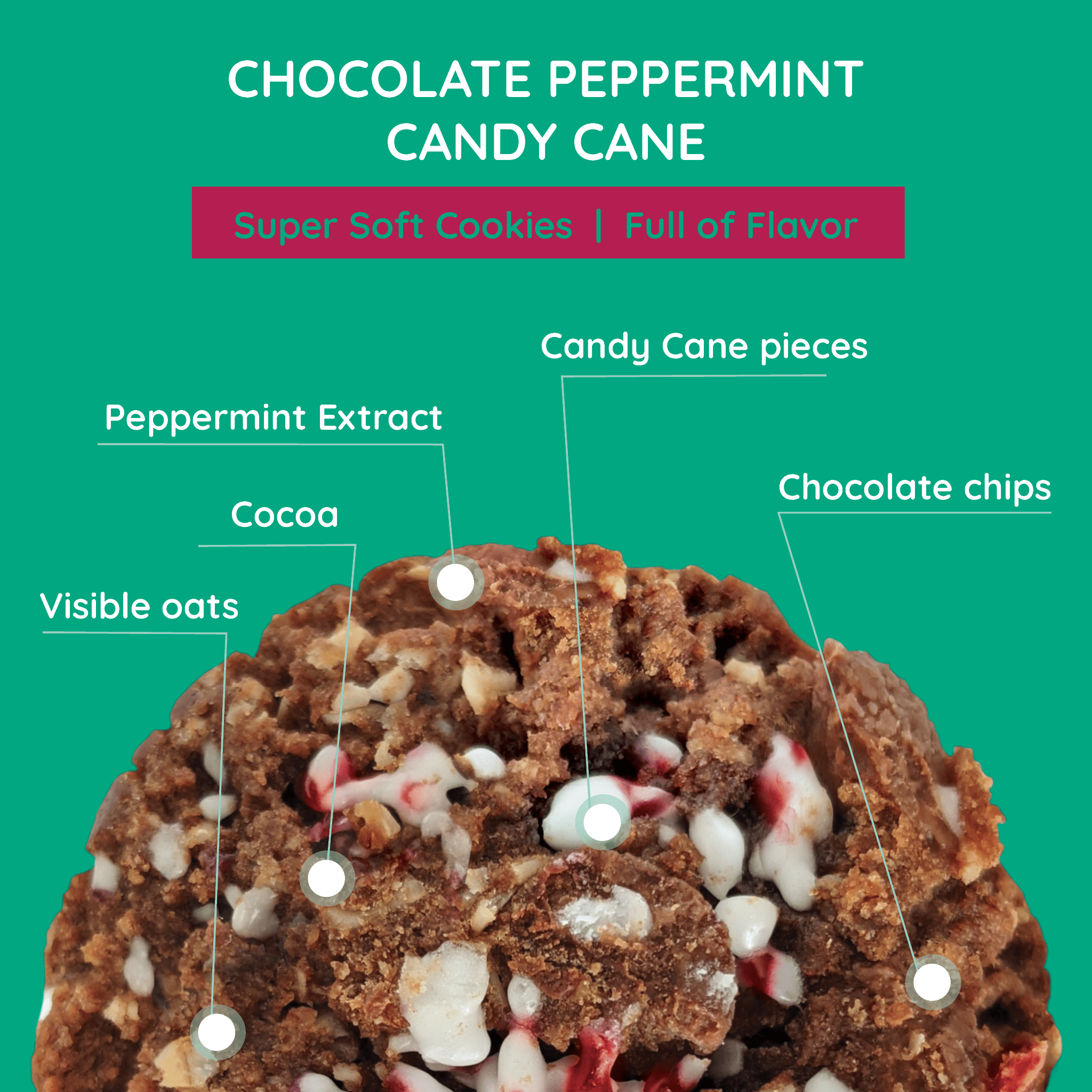 COOL & FUDGY. Everything you want at the holidays rolled up into one delectable cookie: Soft, fudgy chocolate mixed with crisp peppermint and topped with crunchy candy cane pieces. Santa approved!