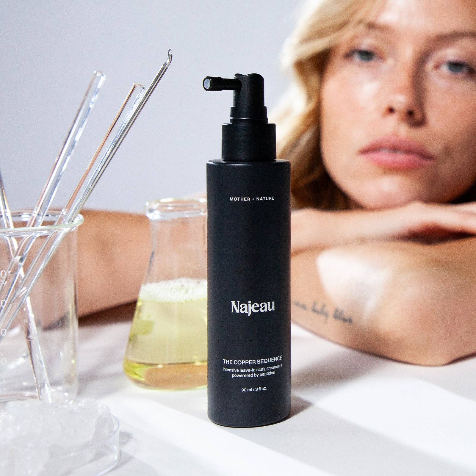 Najeau's advanced leave-in scalp treatment is backed by clinical studies to promote a balanced, healthy scalp environment. Lightweight, fast-absorbing, and residue-free, this next-generation formula blends cutting-edge actives with lush botanicals to deliver visible results.