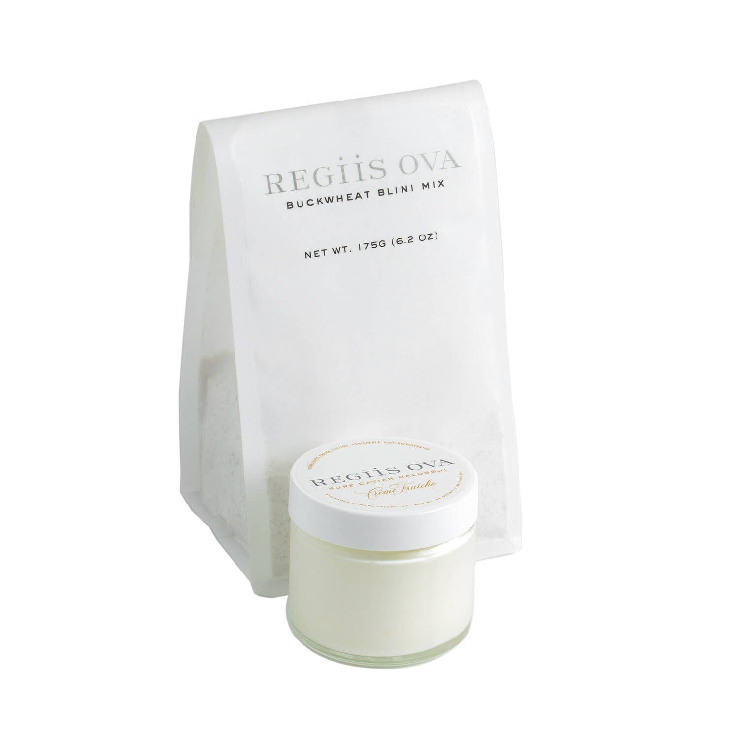 Ingredients are cream and culture. Blini mix not included and sold separately. Jar is 2.25oz.