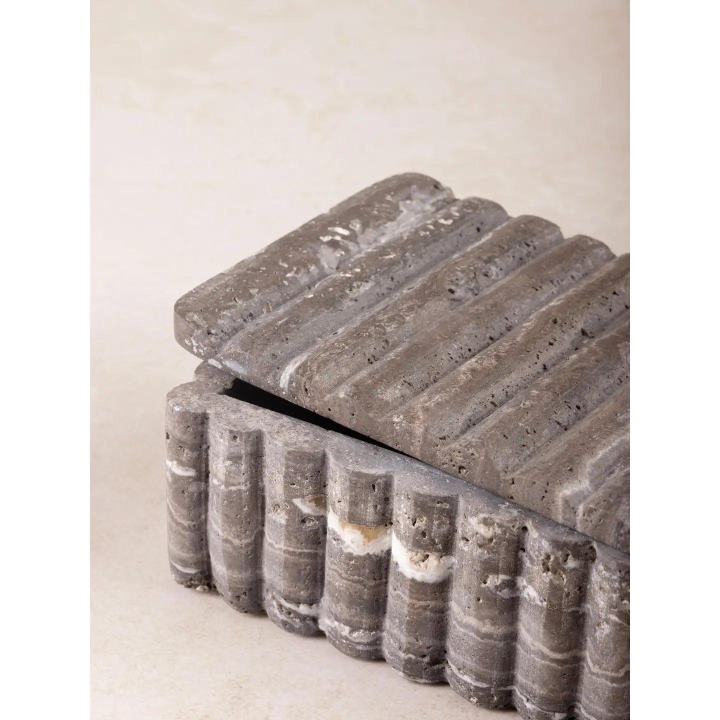 The Cuba Decorative Box, available in artichoke green onyx, embodies the essence of stone's natural beauty with its stunning fluted design. Each piece is lovingly handcrafted in India by skilled artisans, reflecting sustainable craftsmanship and traditional methods that require several days to refine.