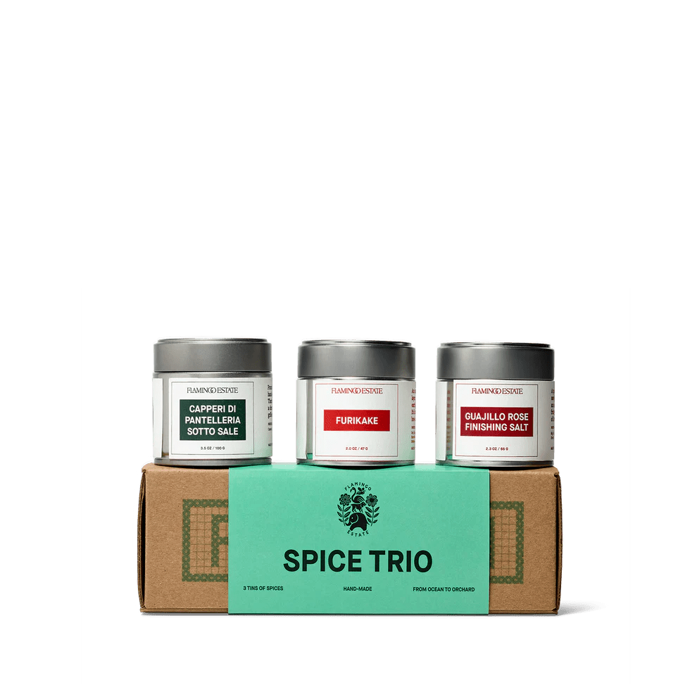 Inside this set you’ll find fiery Furikake, our Guajillo Rose Finishing Salt, and the legendary Capperi di Pantelleria Sotto Sale — a trilogy that captures the three dimensions every cook dreams of: texture, brightness, and depth.