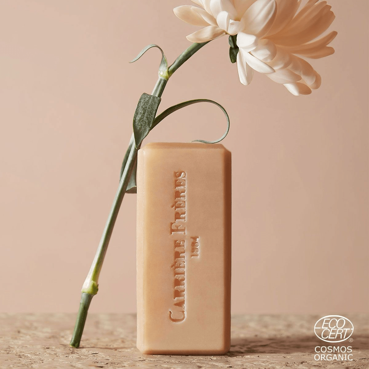 Short and natural, Carrière Frères solid soaps' formula is only made of essential ingredients. A care soap that respects and protects your skin: with no silicone, no aluminum, no paraben, no palm oil (or palm oil derivatives).