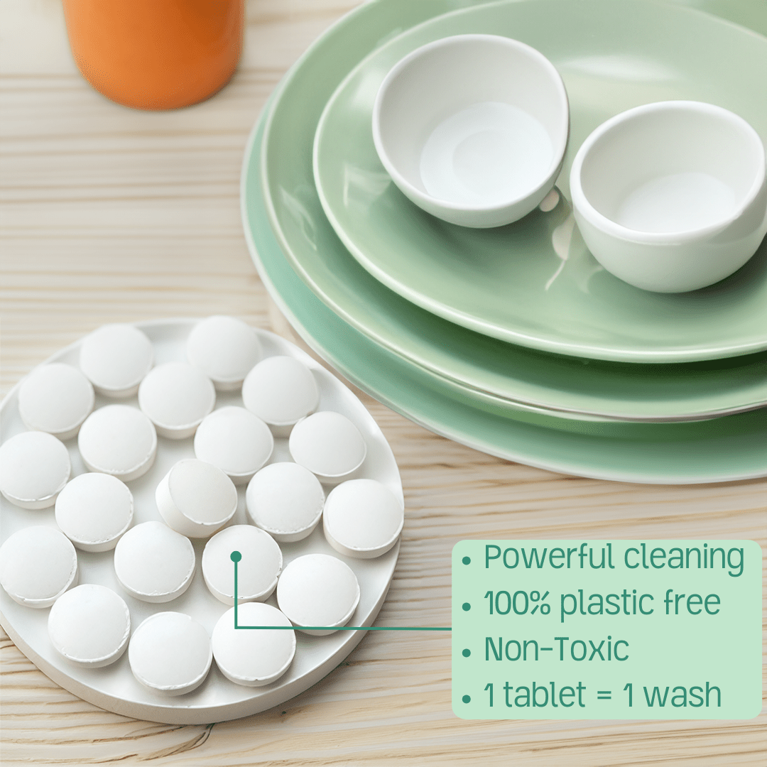 Green Llama Dishwasher Tablets in compostable packaging are perfect for those who value both the environment and superior cleaning. These eco-friendly, non-toxic tablets ensure dishes are sparkling clean and residue-free, without harsh chemicals. These are the perfect replacement for pods and are free from PVA and plastic.