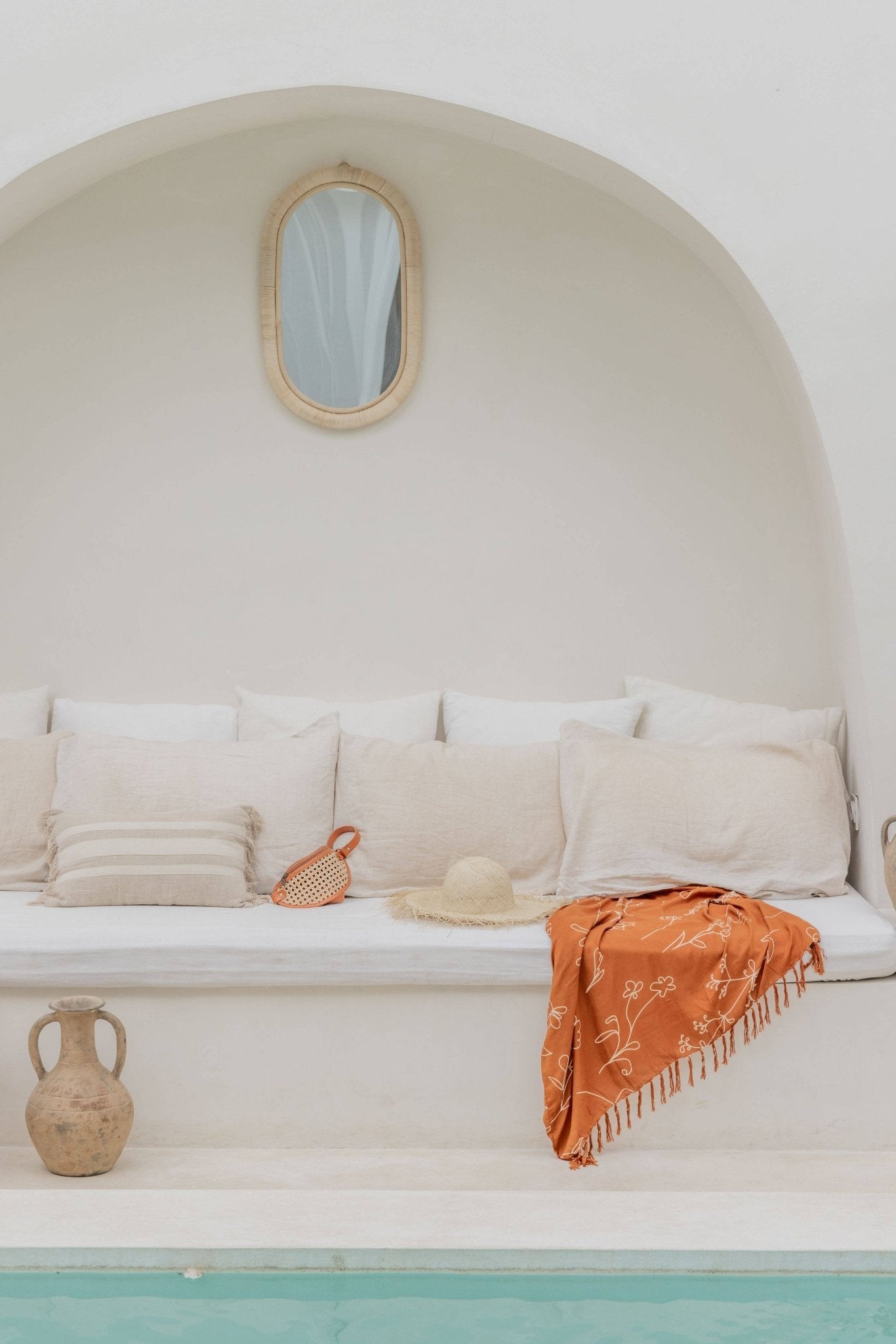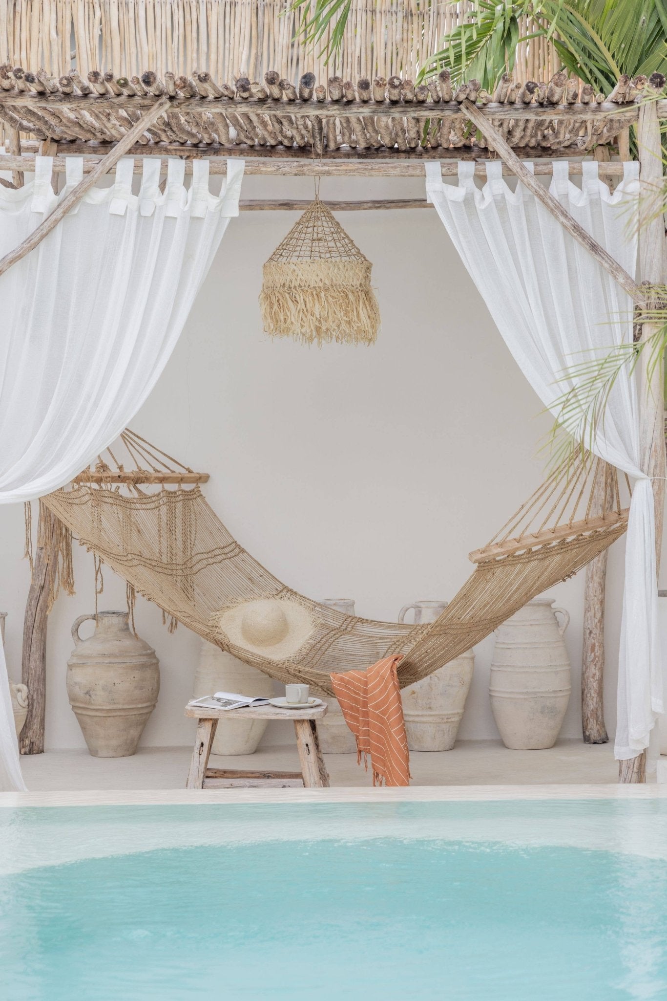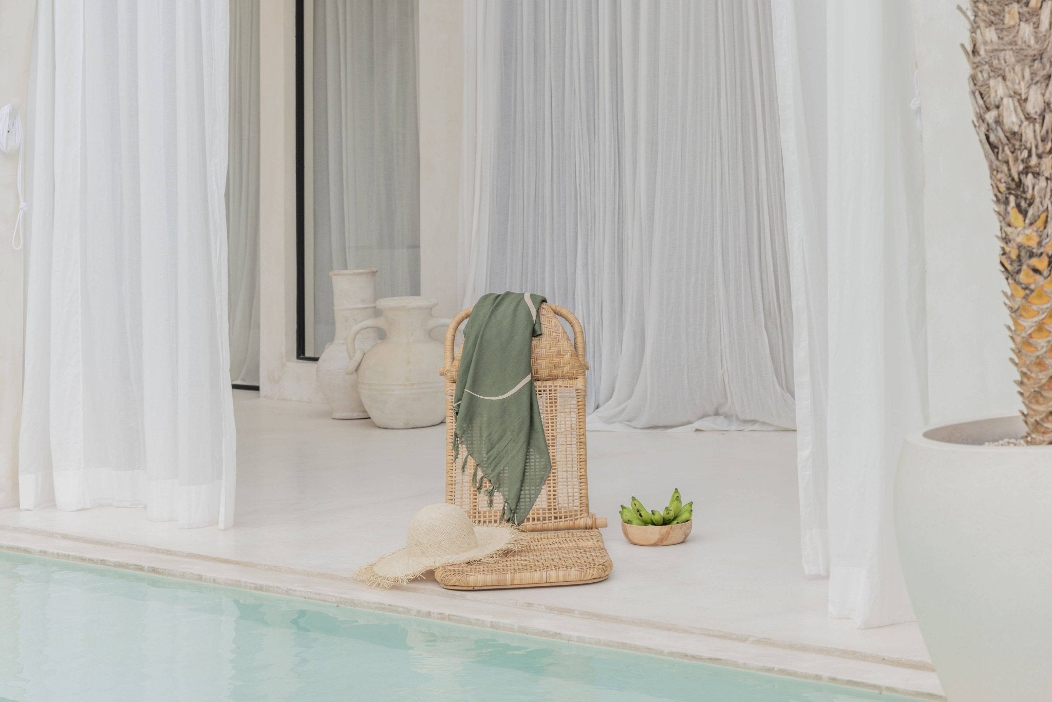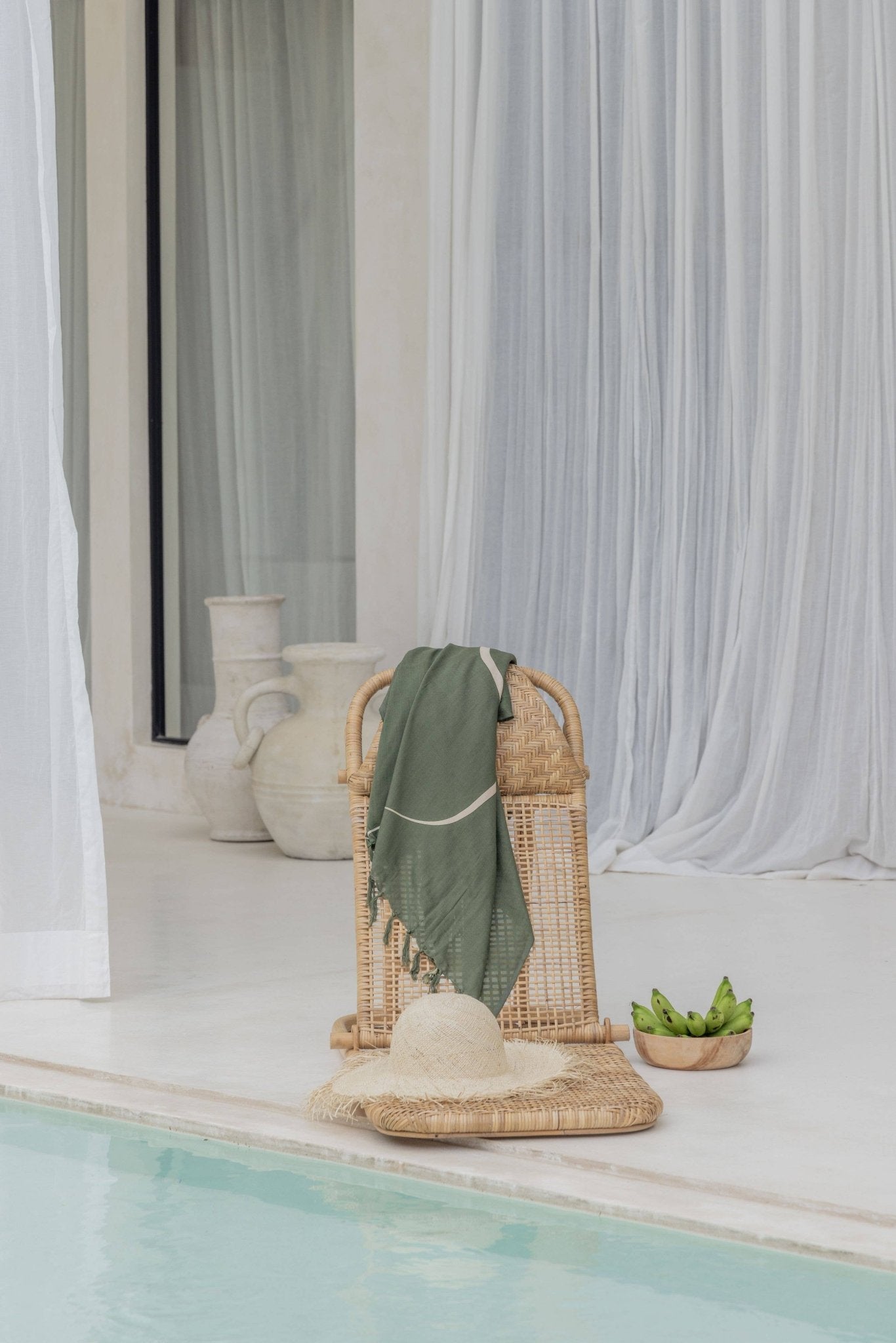 Keep the summer sun off your face and out of your eyes with this elegant, hand woven, frayed sun hat. Made from natural materials in Bali, Indonesia. Size: One size fits most Material: Rontal Leaf