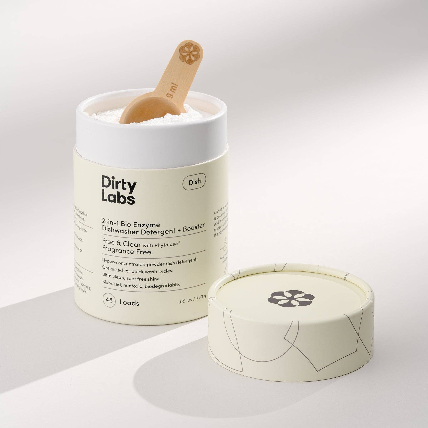 Dirty Labs ultra-concentrated 2-in-1 powder formula is designed with the most advanced bioenzymes and natural, nontoxic ingredients to break down tough messes and stubborn stuck on food -- without the harsh chemicals.