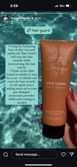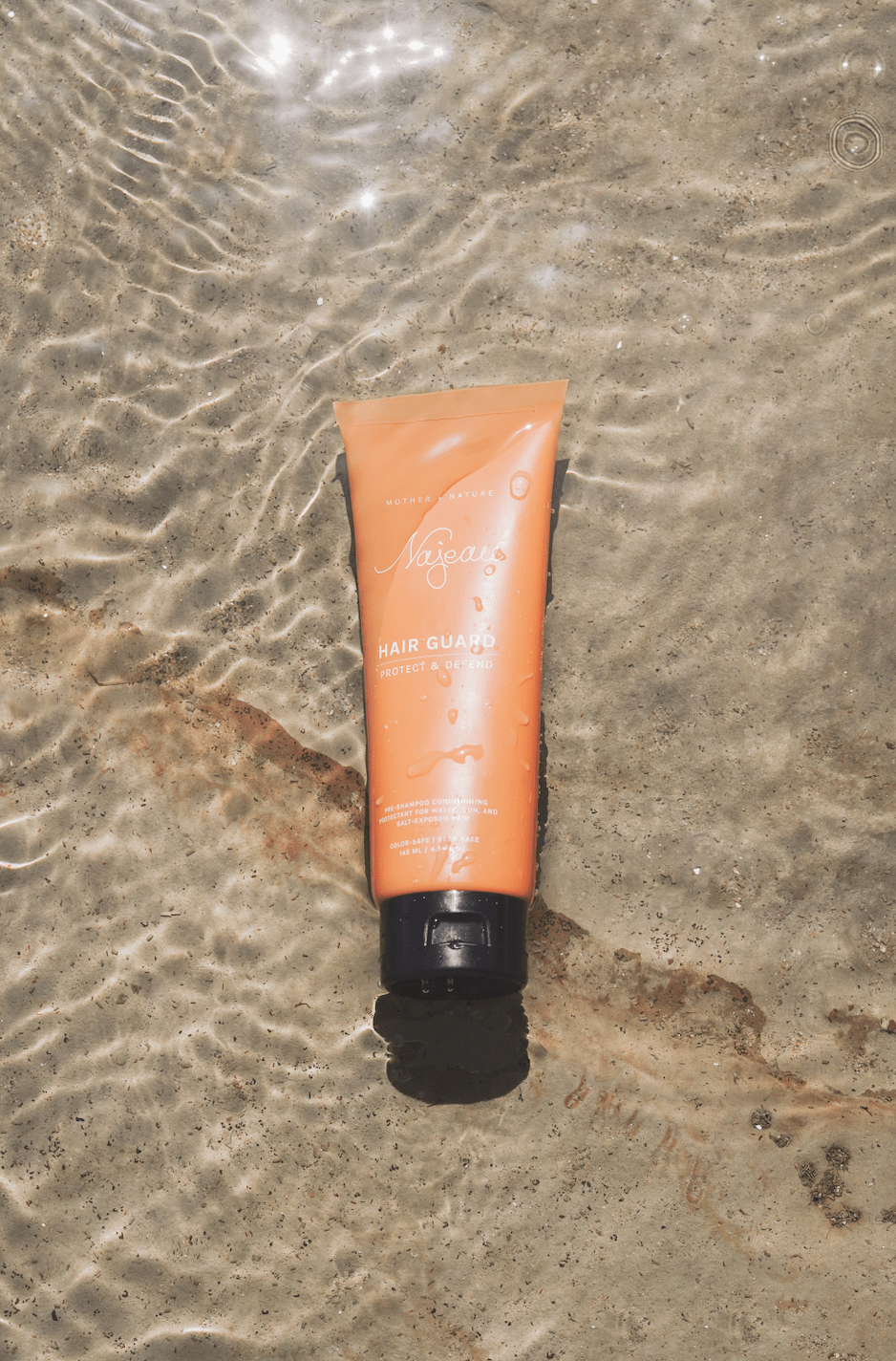 Najeau's Hair Guard is a conditioning treatment that protects hair against the damaging effects of chlorine, sun and salt-water exposure.