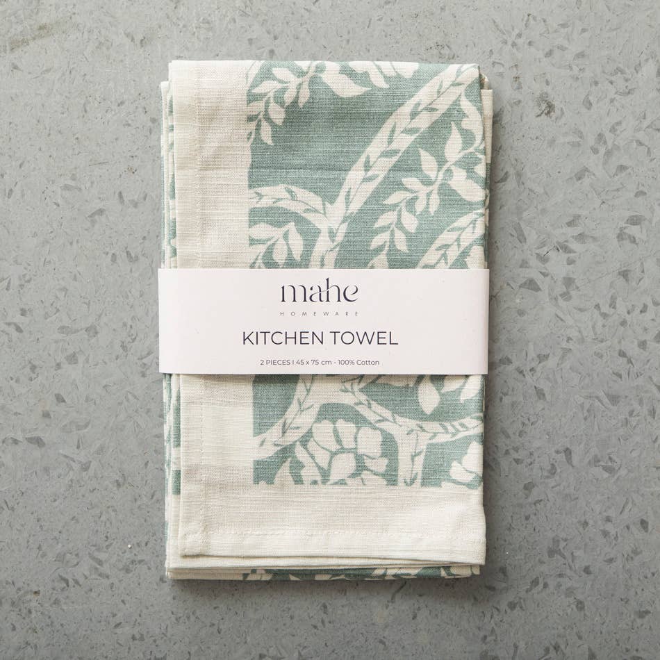 Cotton printed kitchen towel in a cachemire/paisley inspired pattern.