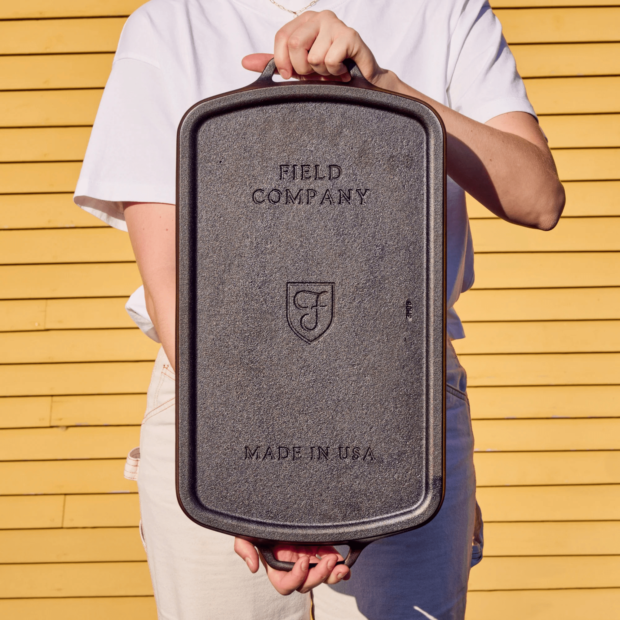 Field Cookware follows vintage sizing conventions, as a nod to the classic American-made pieces that inspire us. We call our double-burner size the Long Griddle to distinguish it from our single-burner No.9 Round Griddle.