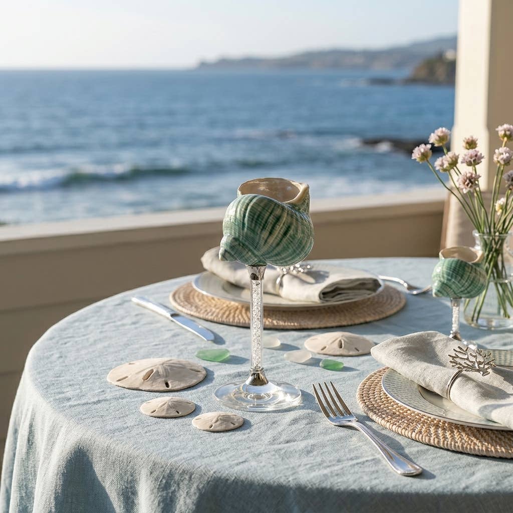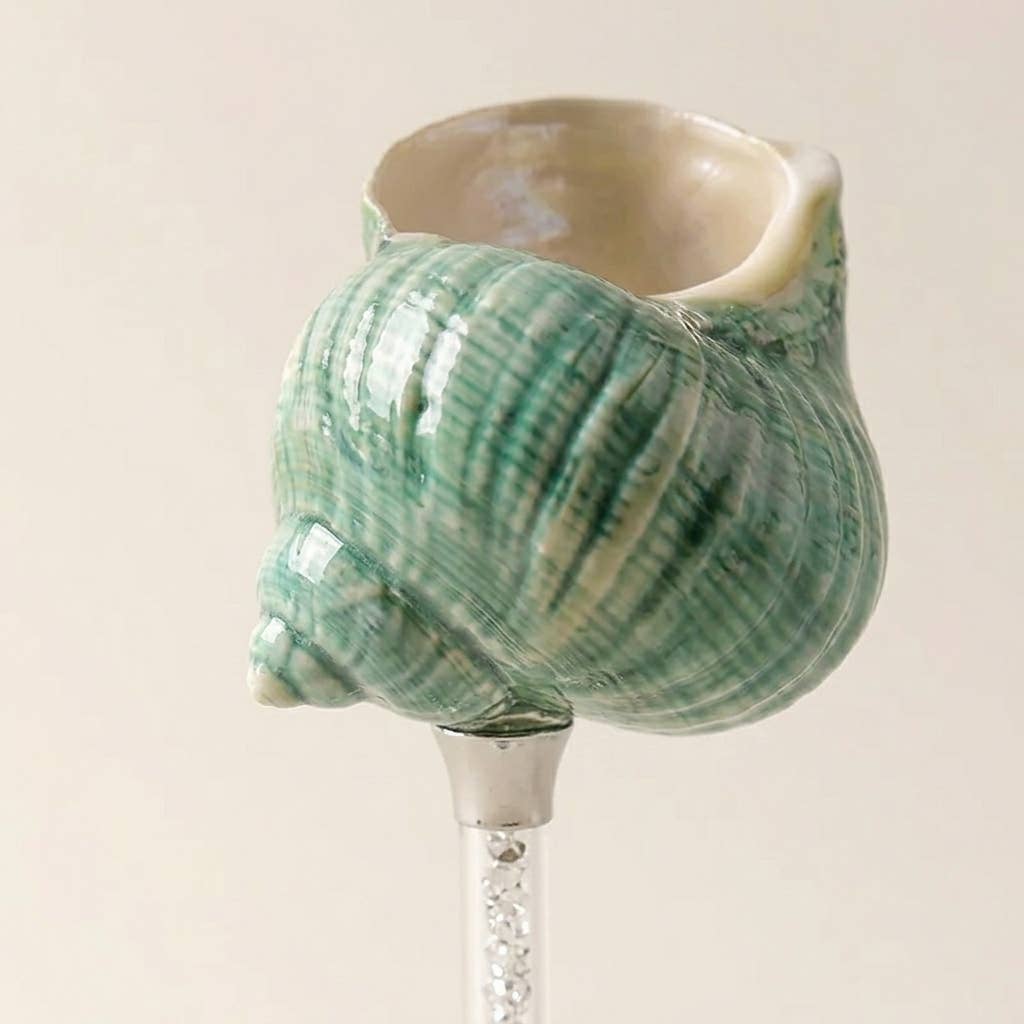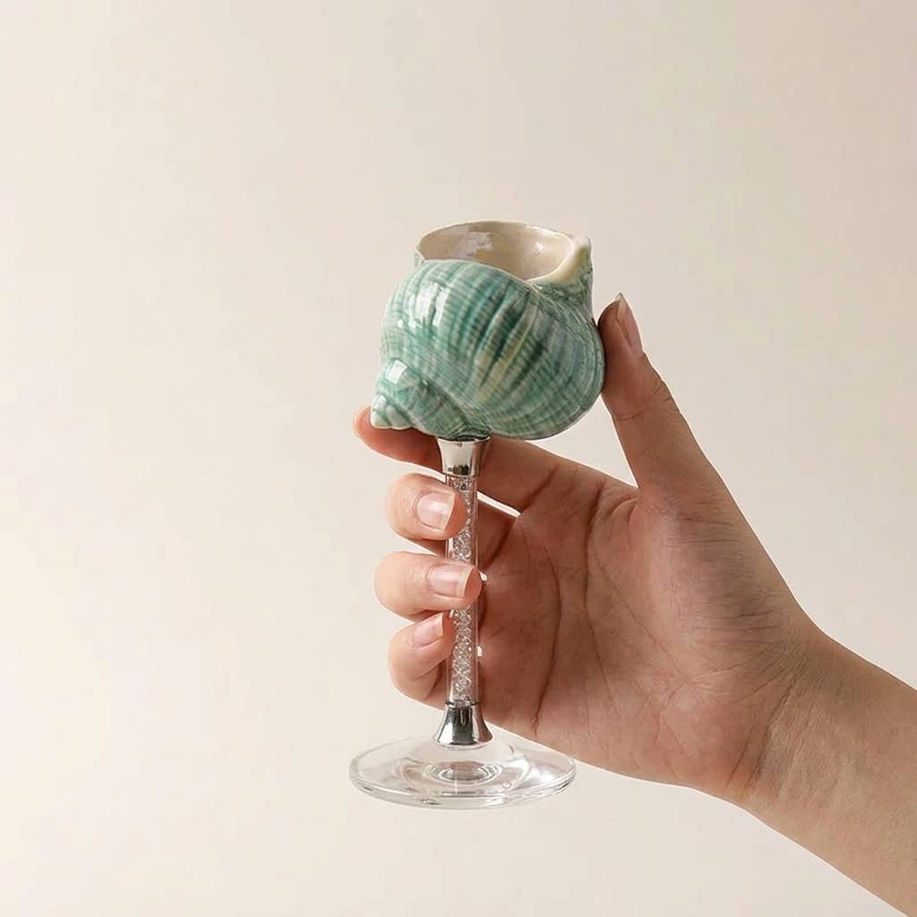 A sculptural seashell-inspired glass crafted from lead-free glass — designed to elevate cocktails, wine, and everyday drinks with a coastal touch.