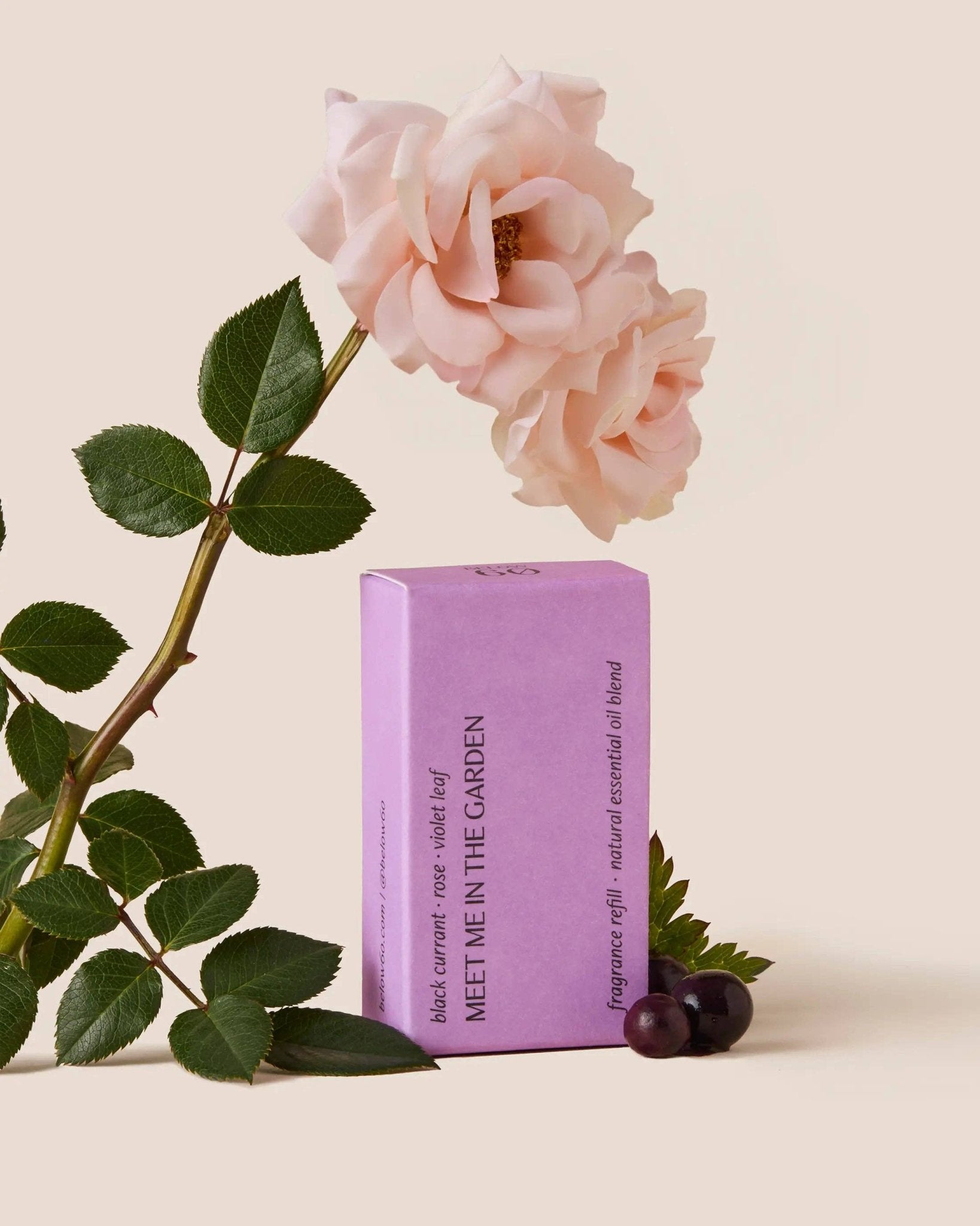 Take the path that calls you in—velvety blooms, sweet berries, and sunlit violet leaves overhead. It smells like memory and mystery. You catch a whisper of palo santo and leather, and just like that, your heart knows: something’s about to begin.