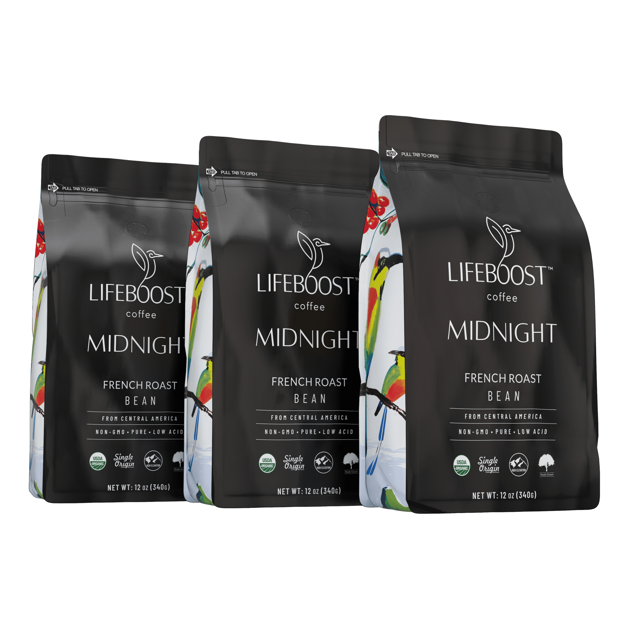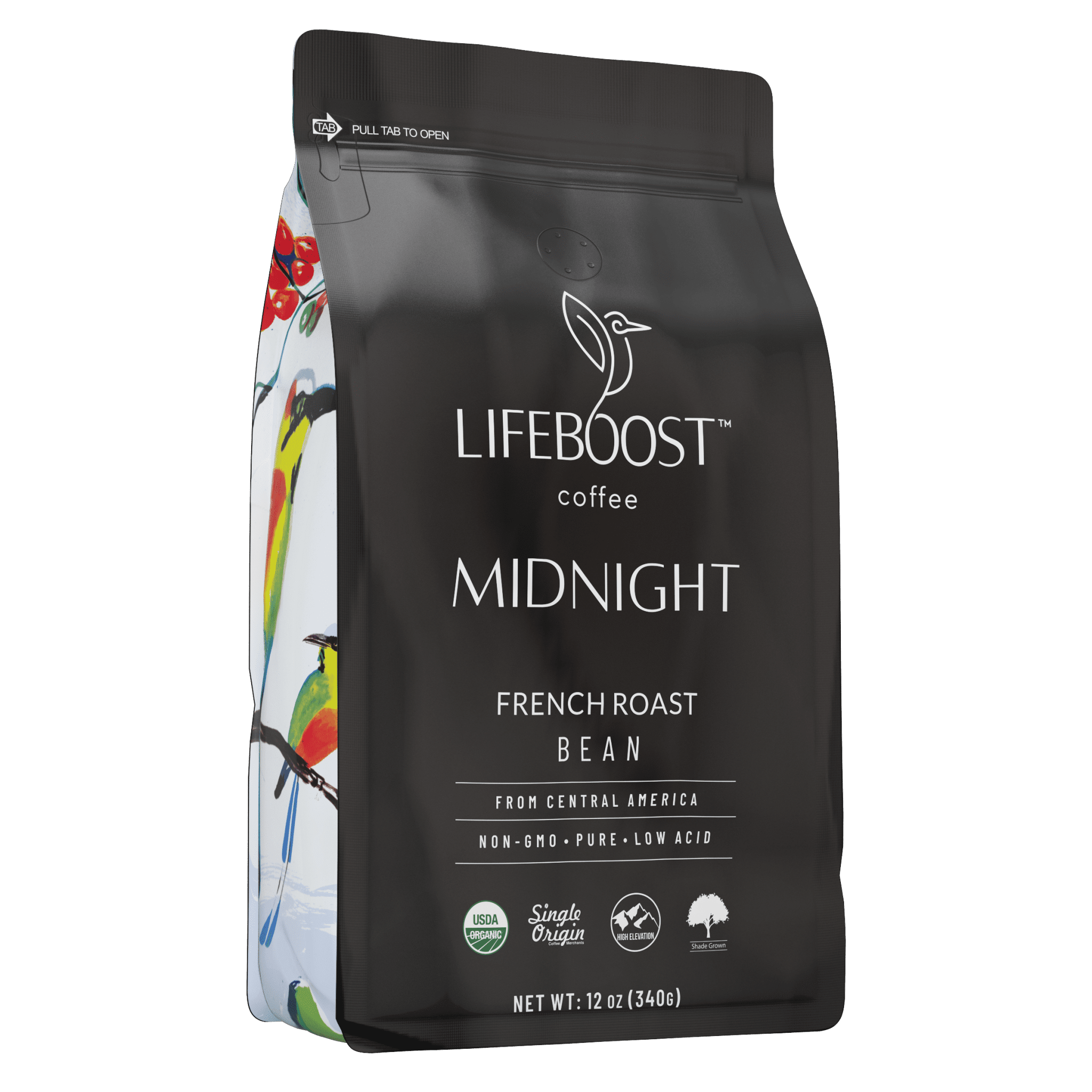Announcing: The healthiest Darkest roast coffee possible, delivered to your doorstep. Midnight About Lifeboost Midnight Roast * Single origin - one high-quality source, no blends. * Mountain shade grown - no pesticides used and bird-friendly for our environment. * Sun-dried and spring-water washed - no chemicals or harmful processes ruining the purity and health properties of the coffee. * 3rd party tested for mycotoxins, heavy metals, acrylamides, pesticides + 400 other toxins! * Very dark, robust, and flavorful * USDA organic