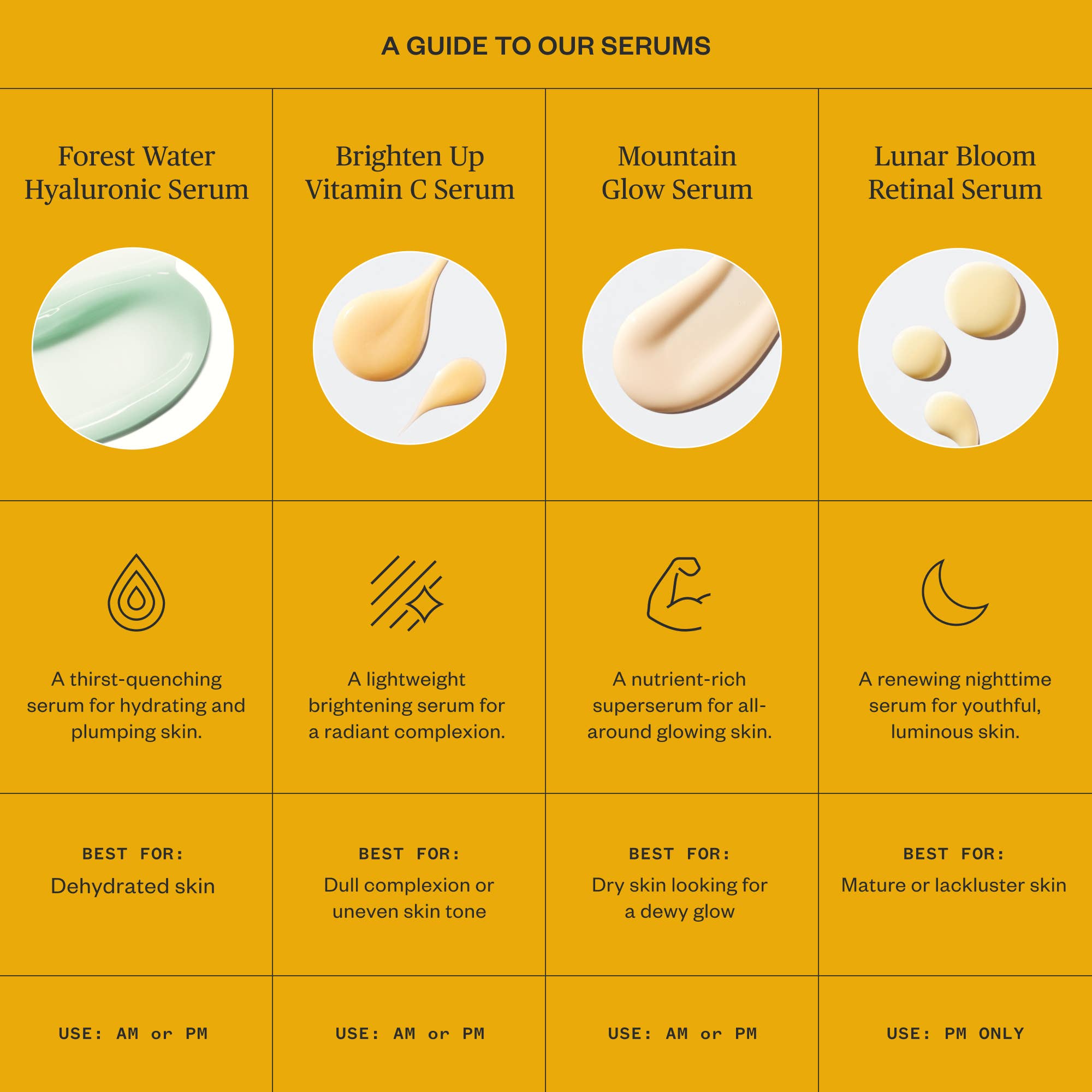 Massage 1-2 pumps into clean skin before applying your favorite moisturizer. Use AM or PM—or anytime you’re yearning for that healthy mountain glow.