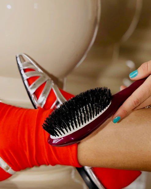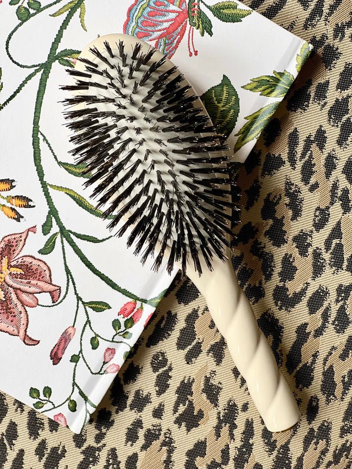 Rich in keratin, the boar bristles of the Coral Universal Hair Care Brush naturally moisturize and nourish your hair.