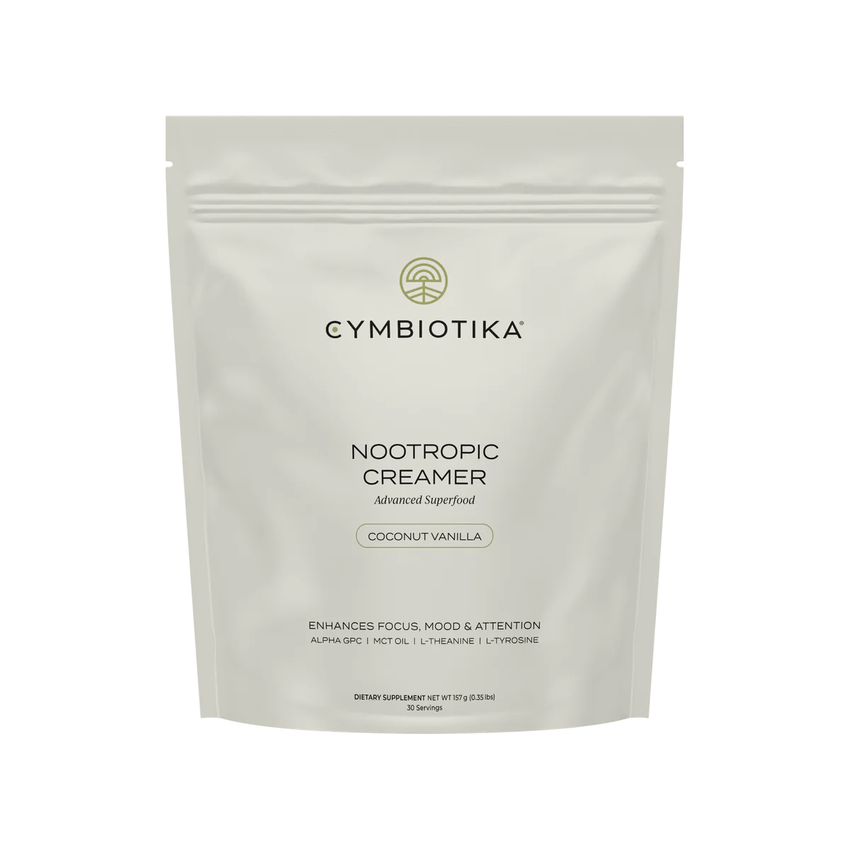 Cymbiotika's Nootropic Creamer is a nutrient-rich superfood packed with healthy fat like MCT from coconuts, bioavailable minerals, and amino acids like L-theanine, L-tyrosine, and Alpha GPC. Working to elevate your morning ritual, this powerful blend enhances cognition, focus, and mental clarity.