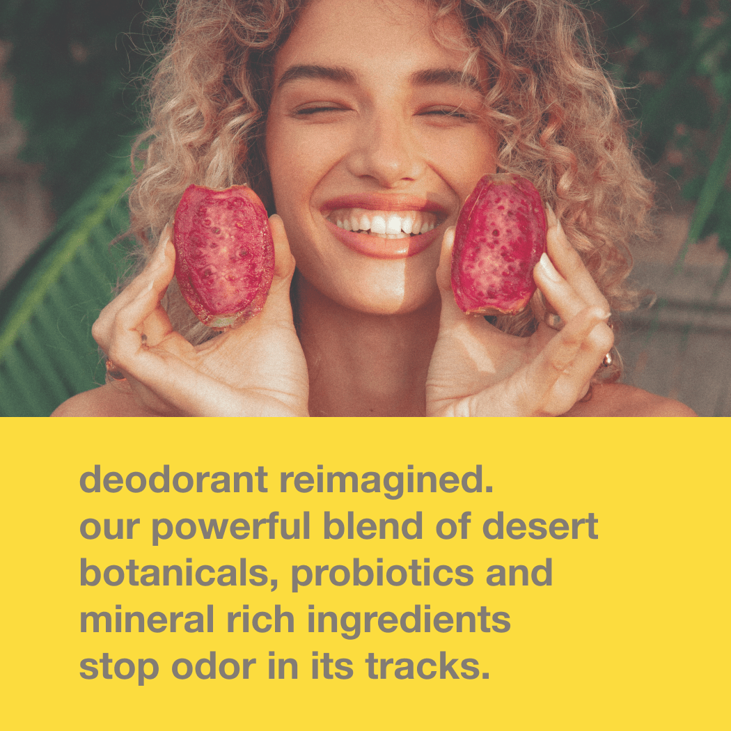Plant-derived deodorant with a powerful blend of prebiotics, probiotic ferments and mineral-rich ingredients that work with your body — not against it — to nourish your skin, support the skin microbiome, and prevent odor before it forms.