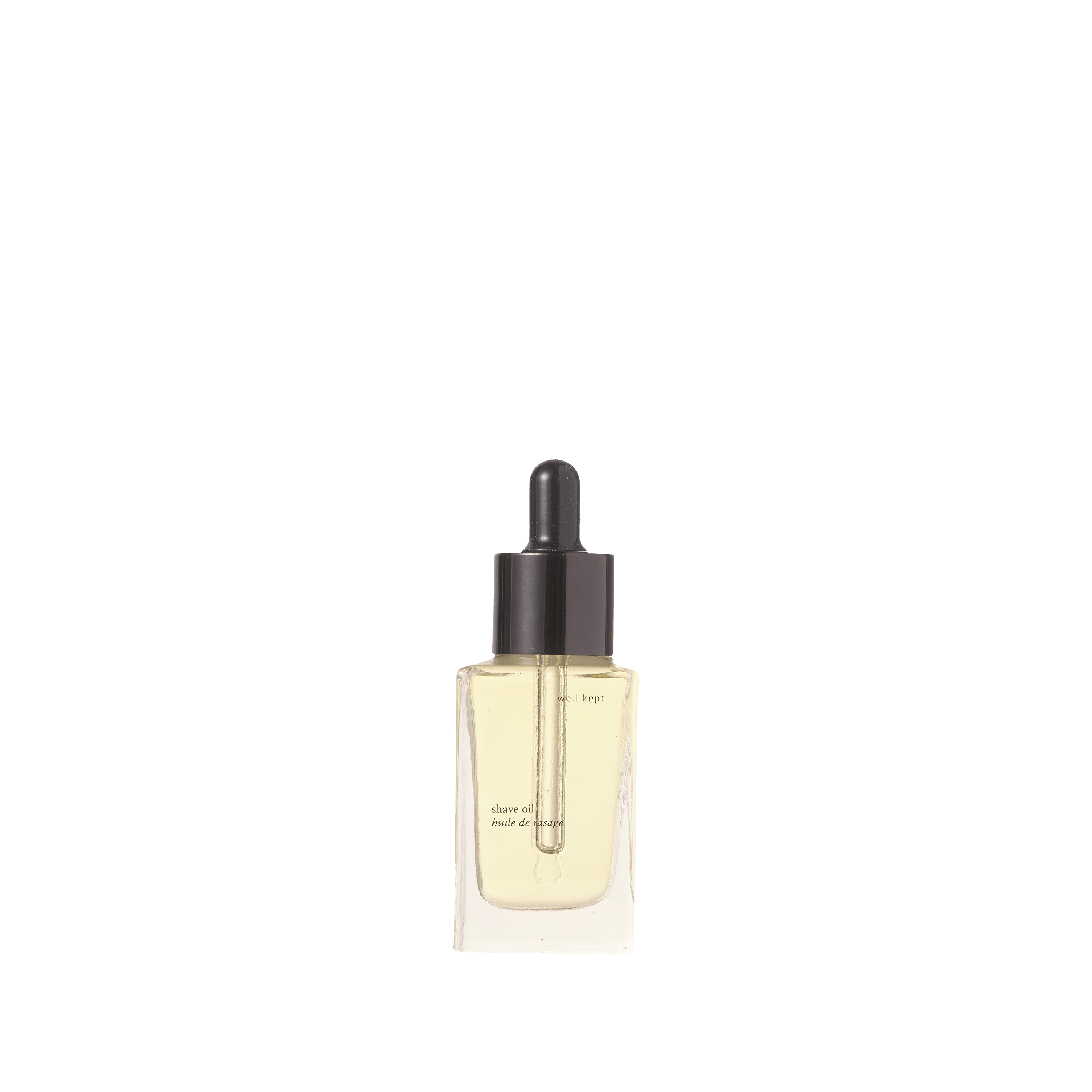 Well Kept shave oil contains all-natural ingredients that soothe your skin. Almond and argan oil offer a protective barrier and continue to hydrate after you’ve finished shaving; vitamin e helps with healing; rosemary essential oil reduces irritation (and smells really, really good).