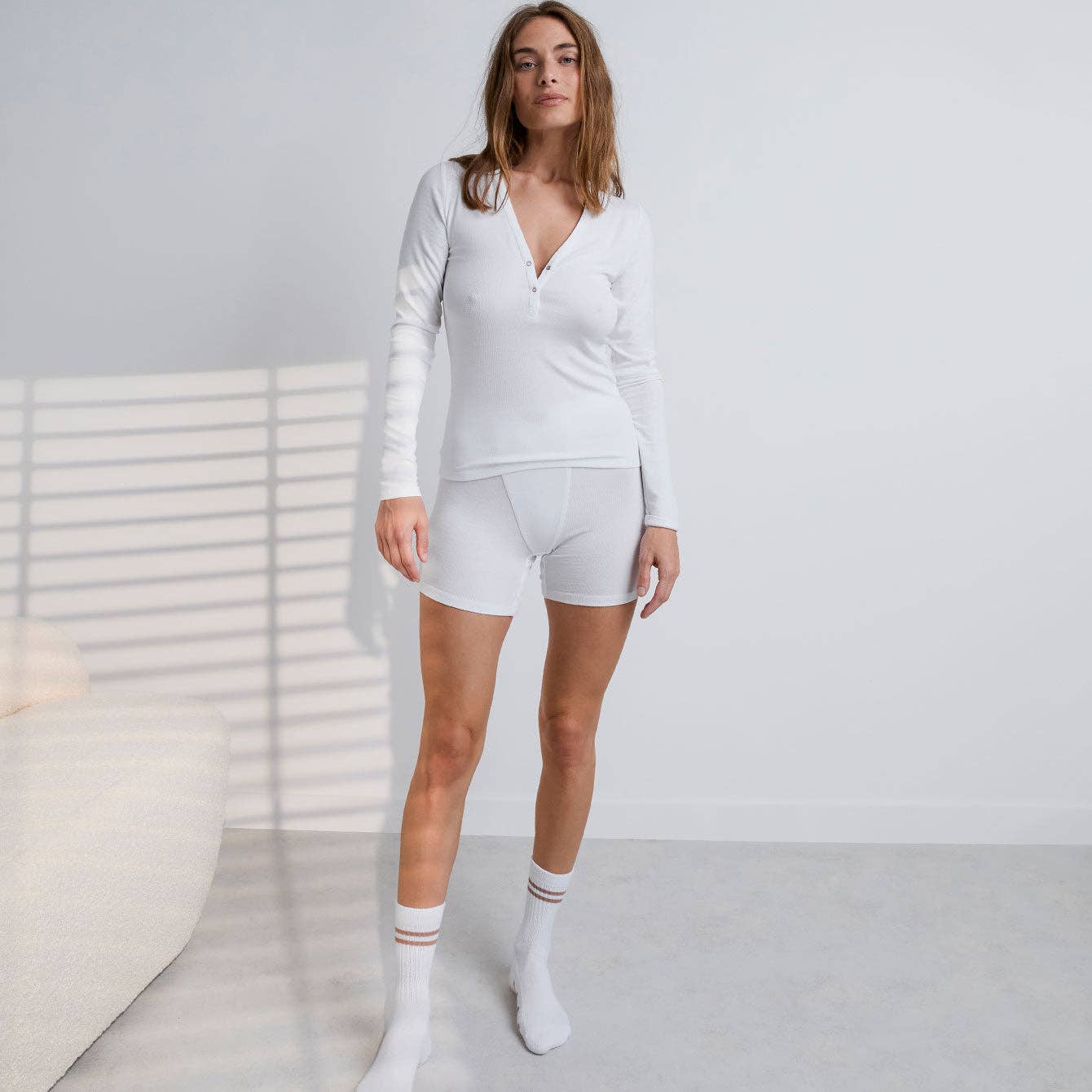 Soft Modal Rib V-Neck Henley - White