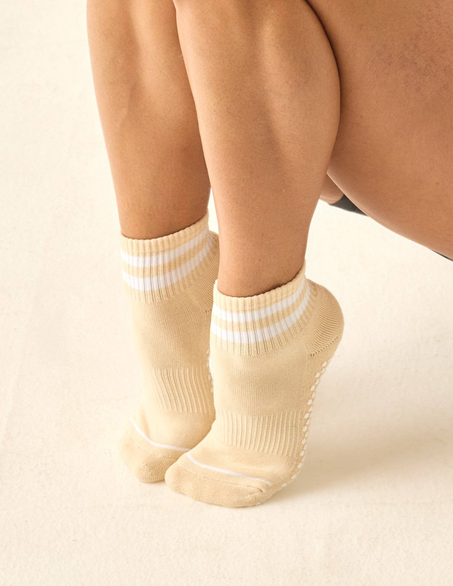 The Boyfriend Grip Sock Borrowed but better! The Boyfriend Sock brings retro style to your next studio class. Engineered with breathable, moisture-wicking, performance fabric, these cropped tube socks are a fan favorite.