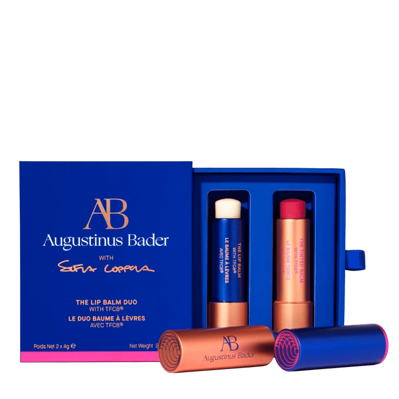 Augustinus Bader's award-winning The Lip Balm and The Tinted Balm in Shade 1—created in collaboration with Sofia Coppola—now in one covetable set. Nourish, plump, and renew with a clear balm or a sheer, yet buildable deep pink tint for softer, smoother, healthier-looking lips. Powered by TFC8®.