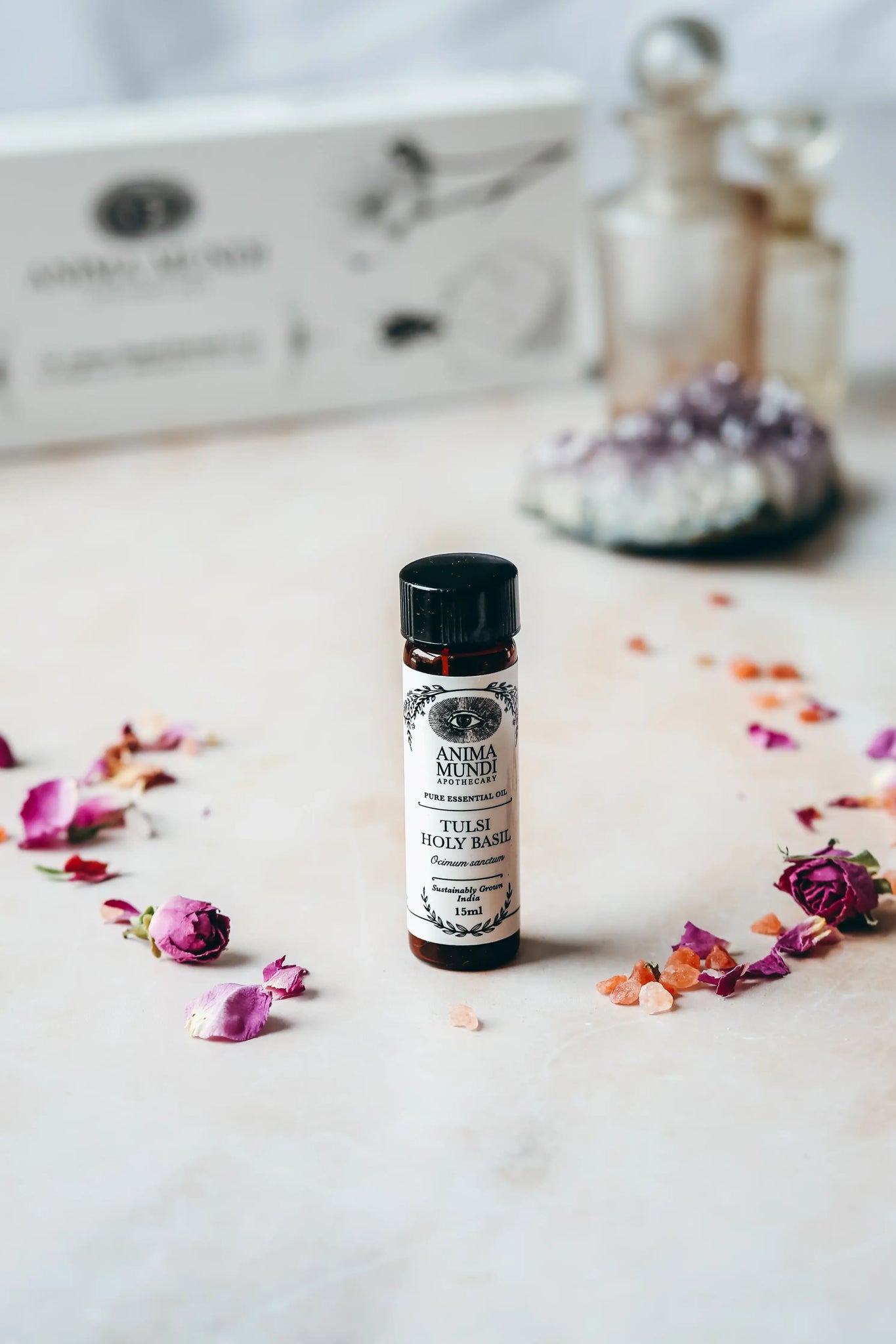 A powerful aromatic herb, Tulsi, or Holy Basil, is considered a purifier of the mind, body, and spirit. Tulsi has a special place in Hindu courtyards across India, where it is planted for its auspicious and protective powers.