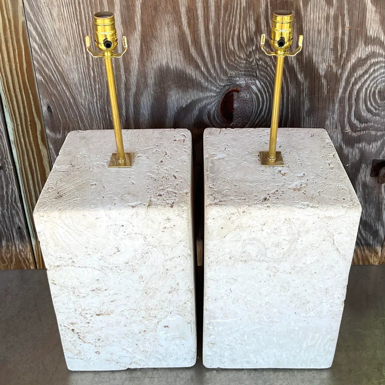 Vintage Coastal Large Coquina Stone Block Lamps - a Pair