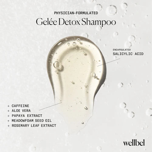 Gelée Detox Shampoo is a dermatologist-tested, color-safe detox shampoo developed with advanced encapsulated technology to cleanse and gently exfoliate your scalp, removing impurities and buildup without stripping your hair’s natural oils. Our pH-balanced, physician-formulated gelée resets your scalp’s microbiome while providing a light, bouncy, refreshingly clean feel.