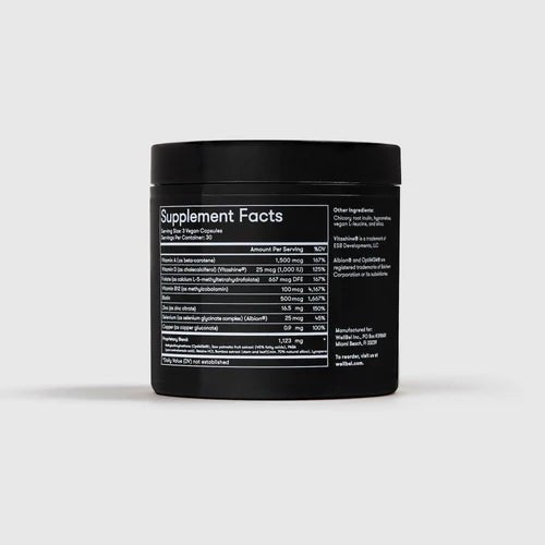 Vitamin A (as beta-carotene), Vitamin D (as cholecalciferol) (Vitashine®), Folate (as calcium L-5-methyltetrahydrofolate), Vitamin B12 (as methylcobalamin, Biotin, Zinc (as zinc citrate), Selenium (as selenium glycinate complex) (Albion®), Copper (as copper gluconate)