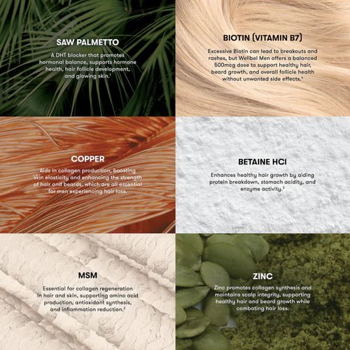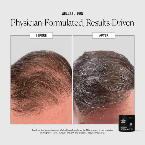 Wellbel Men supports fuller, stronger, and healthier-looking hair by nourishing follicles from within. It helps reduce shedding, improve density, and support healthier regrowth over time. The formula also strengthens thinning areas and promotes a healthier scalp environment for better results. Take daily to support long-term hair strength and visible improvement.