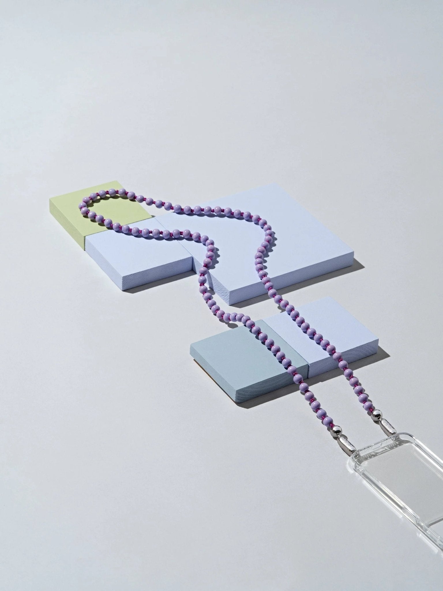 Painted and polished natural wood beads, Woven together with braided cord.
